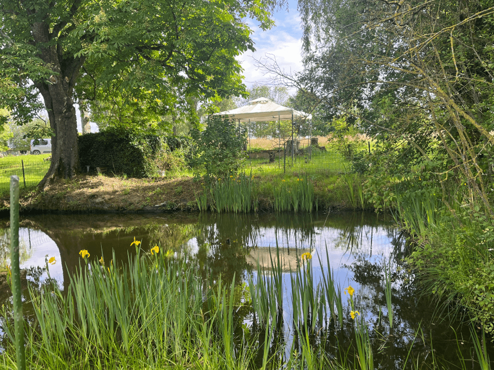 - Espace barbecue – Situé au bord de la mare avec table et chaises pour des repas conviviaux.